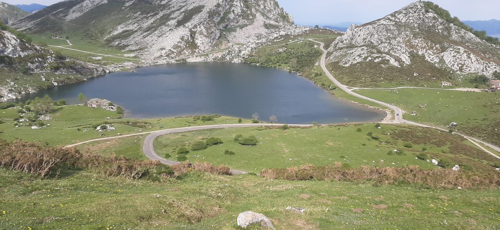Den sogenannten Covadonga Seen den Bergseen Enol und Ercina. Letzterer liegt mit 1.108 Metern am höchsten. Sie liegen im kantabrischen Gebirge und gehören noch zu den Picos de Europa. Raphael machte beim Mirador de la Reine, einem Aussichtspunkt eine Pause um mir eine Verschnaufpause zu geben. Was glaubt er eigentlich? Ich bin doch noch nicht altersschwach und muss nach 7,5 Kilometern steil bergauf eine Rast machen. Auf den restlichen 3,5 Kilometern mit den erwähnten 18 % Steigung habe ich ihm dann aber meine Fitness gezeigt. Aber hallo!