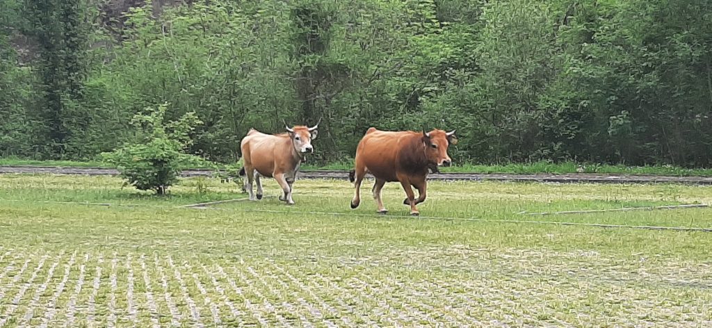 Die Wanderung die die Beiden machten war eindrucksvoll. Überall freilaufende Kühe, die muhten, mit ihren Glocken bimmelten und am schönsten, voller Lebensfreude über die Wiesen rannten.