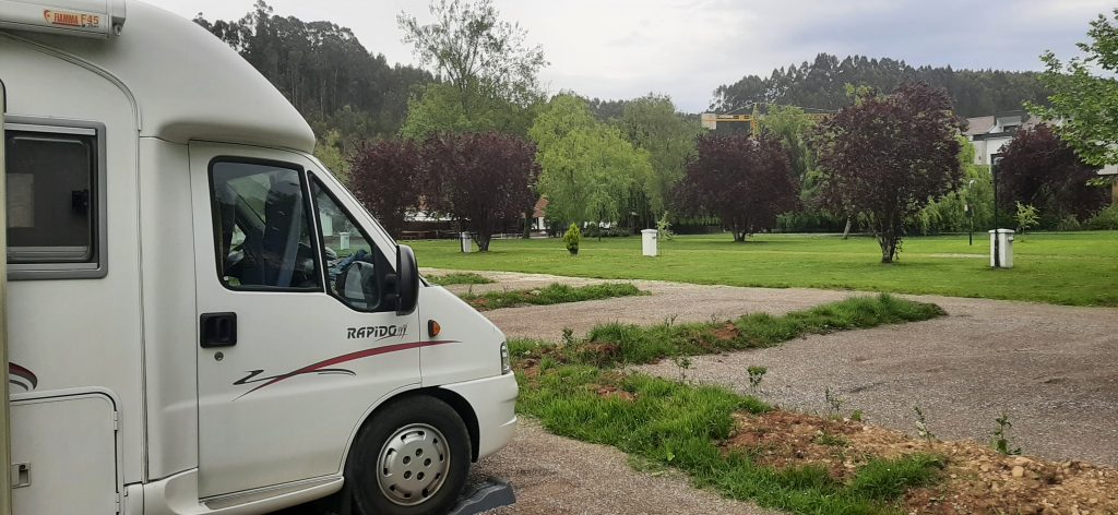 Also zurück zum Stellplatzproblem. In Colombres kannten wir von den letzten beiden Tagen unmittelbar vor dem Dorfeingang einen Picknickplatz. Dort fanden wir nach einigen Versuchen eine Stelle auf der ich halbwegs gerade stehen konnte. Kaum waren wir dort hörte auch der Regen nach und nach auf und die Sonne wagte sich langsam wieder aus den Wolken. Das tat nach den vergangenen 1,5 doch eher trüben und nassen Tagen sehr gut.