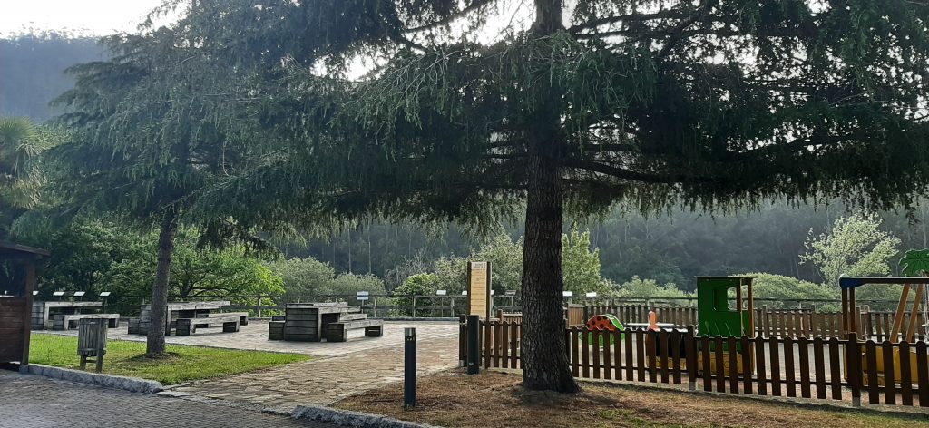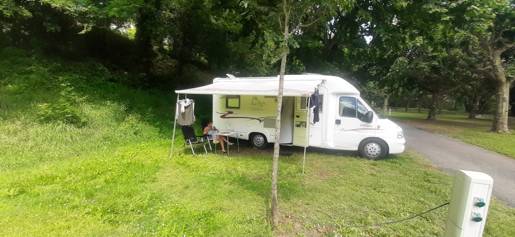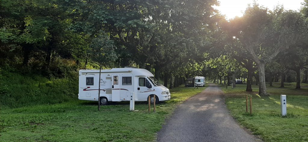 Am Ortseingang ein Picknickplatz mit einem Parkplatz und hohen Bäumen die bei über 30 Grad Außentemperatur kühlenden Schatten boten. Wie es der Zufall so wollte, kam gerade ein Gemeinde Mitarbeiter vorbei um die Müllsäcke beim Picknickplatz zu kontrollieren. Klar wurde er befragt wegen Übernachtung. Er begrüßte Raphael per Handschlag in seinem Dorf. Es war in Ordnung und er erklärte auch, dass hier erst in der letzten Nacht auch ein WOMO gestanden hätte.