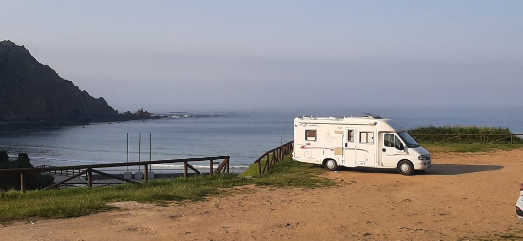 Beim Erkundungsgang waren die Beiden auch an dem offiziellen Stellplatz vorbeigekommen. Unsere Wahl dort nicht hinzufahren war absolut die Richtige. Der Platz war proppenvoll, lag komplett in der Sonne ohne Aussicht auf Schatten und glühte regelrecht unter der Sonneneinstrahlung. Ich verstehe nicht wie meine WOMO Kollegen das aushalten können.