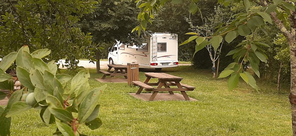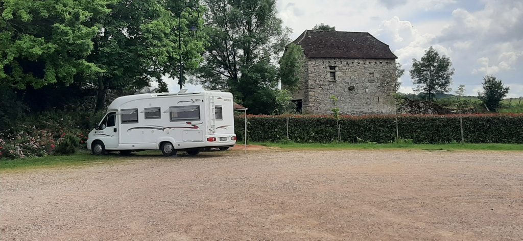 In Belley gab es einen offiziellen Stellplatz mit allem Drum und Dran. Auf den Bildern war eines deutlich zu sehen, es gab keinen Schatten. Für das Wochenende waren gute 30 Grad vorhergesagt. Ohne Schatten und auf schwarzem Teer unmöglich.