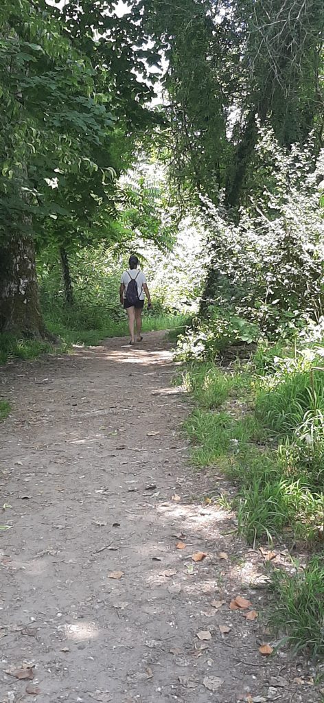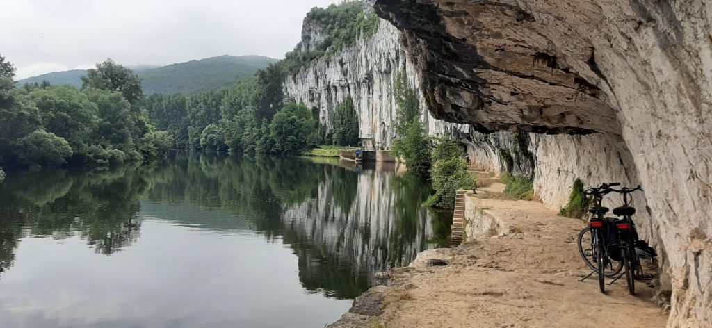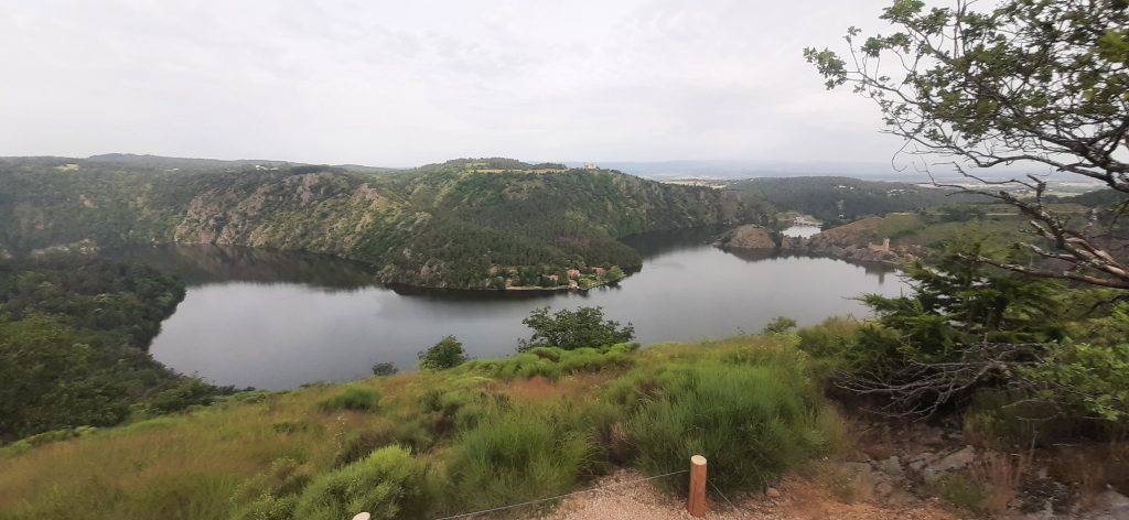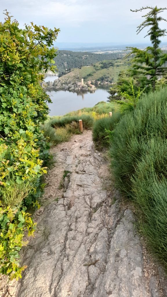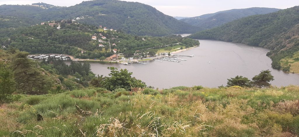 An der Infostelle des Naturparkes der Gorges de la Loire gab es mehrere schöne ruhige und vor allem schattige Parkplätze. Etwa 20 Minuten steil bergab über dem Stausee. Die Straße endete in Les Condamines und meine Beiden machten mehrere sehr schöne Spaziergänge im Naturpark.