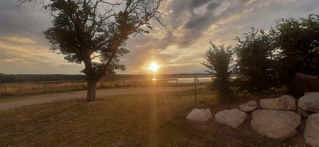 Da der Ort immerhin gute 2 Kilometer entfernt liegt, haben meine Beiden dieses Mal auf eine Erkundungstour verzichtet. An beiden Tagen unseres Aufenthaltes waren es gut 30 Grad Temperatur und permanente Gewitter Gefahr war angesagt. Sicher keine schlechte Entscheidung. So gibt es nur Fotos von dem Platz und dem See. Aber die sind auch sehr schön.