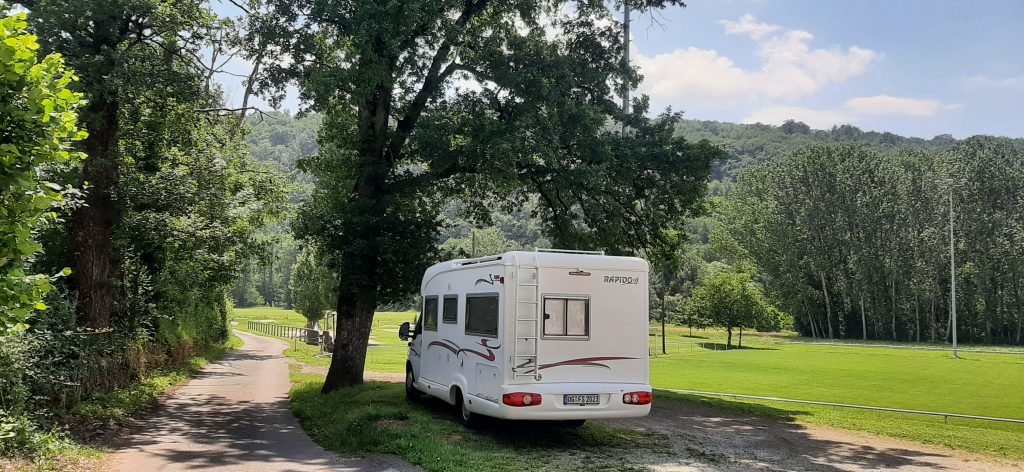 14.06.2023. Von Figeac ging es direkt nach Nauviale. Ein kurzer Weg. In Nauviale bei einem Freizeitgelände empfahl park4night einen kleinen, einsamen, kaum besuchten Stellplatz. Soweit so gut.