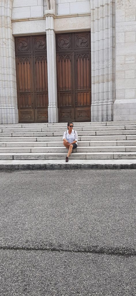 Das Theater sollte einen sehr großen Parkplatz besitzen auf dem Übernachten wohl geduldet wurde. Also dorthin. Der Platz war umringt von großen Platanen, was angenehmen Schatten verhieß. In der hintersten Ecke weit weg von der Durchgangsstraße ging ich auf die Keile und stand perfekt. Ab 14.00 Uhr stand ich komplett im Schatten der Platanen. So war die Hitze erträglich.