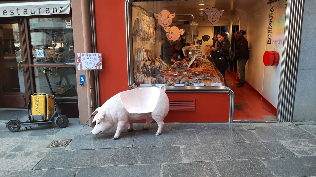 In Vic während der Zeit meiner OP sahen die beiden eine außergewöhnliche Sitzgelegenheit vor einer Metzgerei.