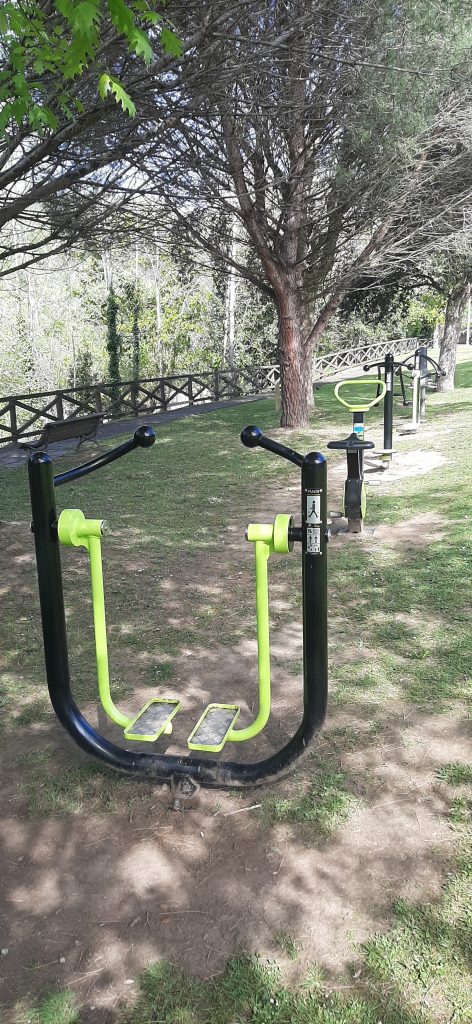 Ich hatte ja schon einmal darüber berichtet, dass die Sporteinrichtungen in Spanien generell sehr gut besucht sind. Aber das Tollste finden wir sind die in jedem noch so kleinen Dorf zu findenden Fitnessparcours. Ein paar Geräte auf einem Grünstreifen und los geht es mit Trimm Dich. In Les Cases d Alcanar beobachteten wir sogar, wie täglich selbst Menschen über 80 zum Teil zwei Mal am Tag kamen um die Übungen an den Geräten zu machen. Die Bilder stammen aus Puente Viesgo und zeigen einen besonders farbenfrohen Fitnessparcour.