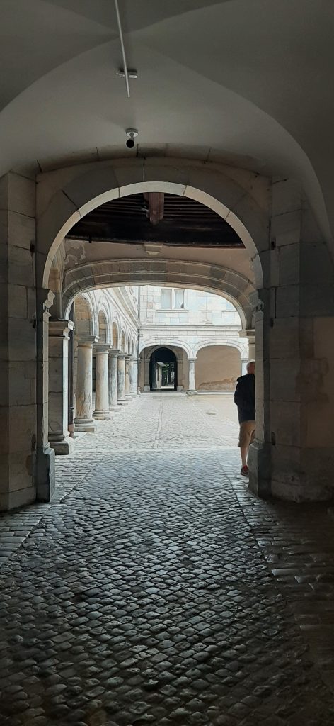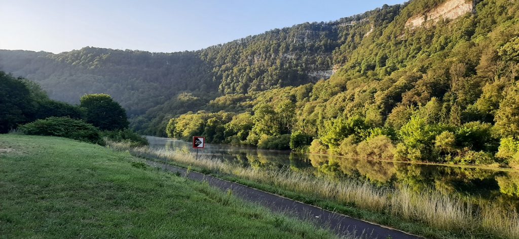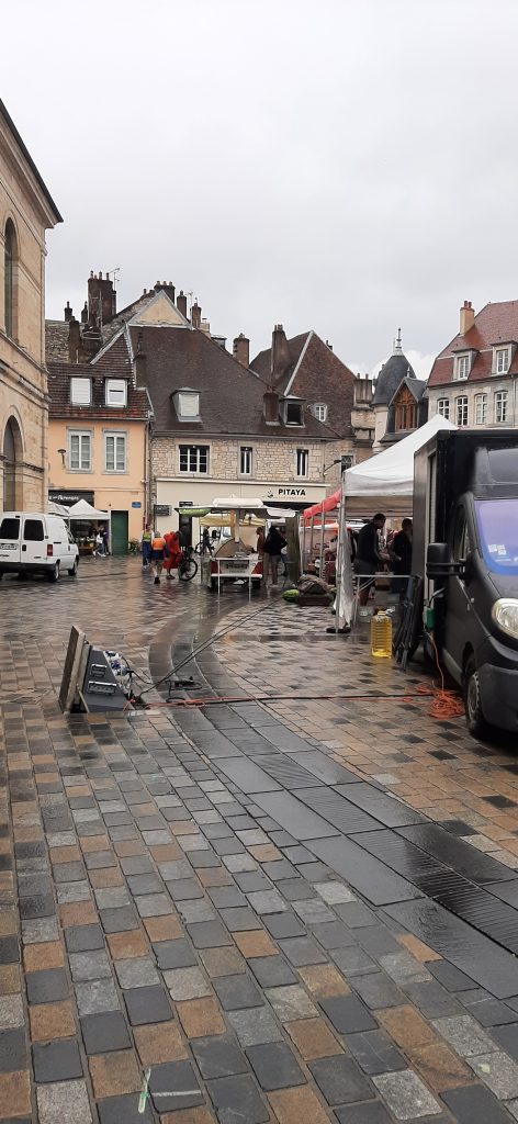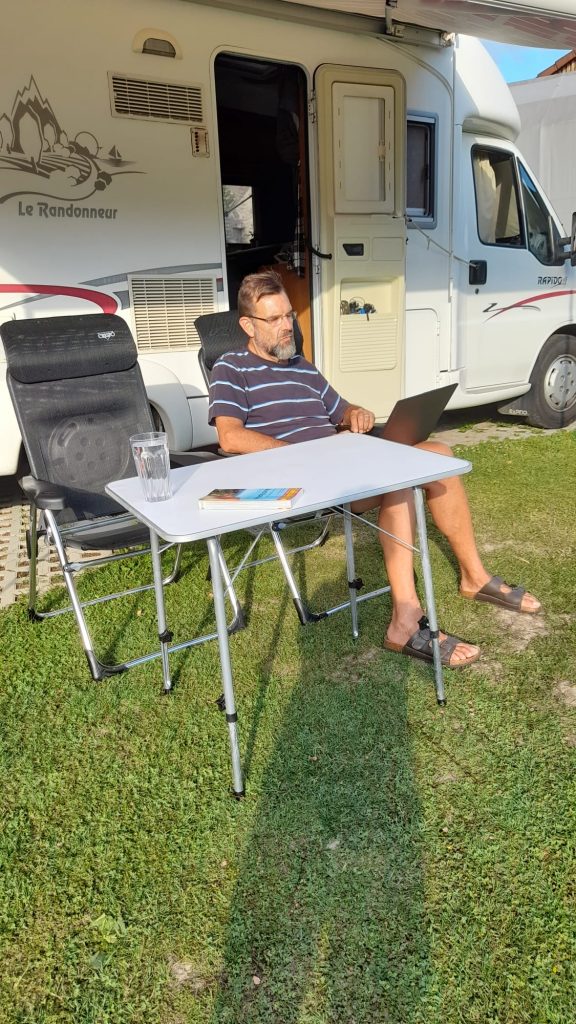 So geht Höflichkeit natürlich auch, oder? Das Beste kam aber danach. Beim Befüllen meines Frischwasser Tanks stand der Kollege plötzlich neben Raphael und fragte warum wir das für WOMOs über 3,5 to in Frankreich vorgeschriebene Warnschild Angles Mortes nicht dran hätten. Raphael erklärte ihm, das sei bei mir nicht nötig, da ich ja nicht über 3,5 to wiege. Unter uns, wie würde meine Adonis Karosserie mit mehr Speck auf den Rippen denn aussehen?